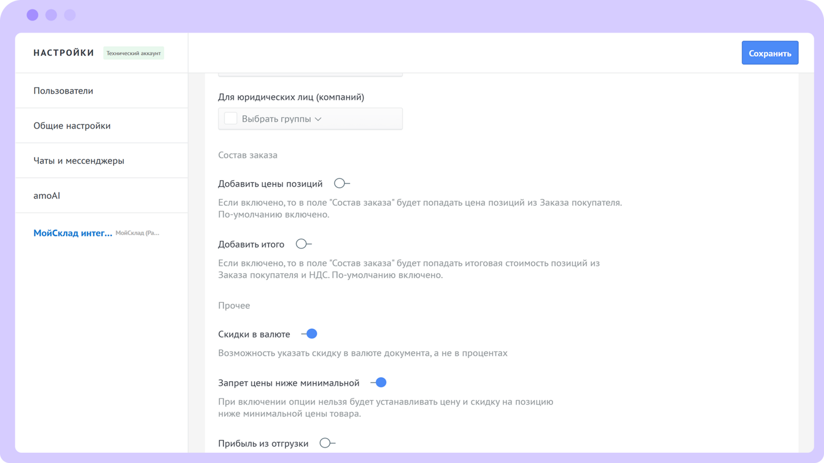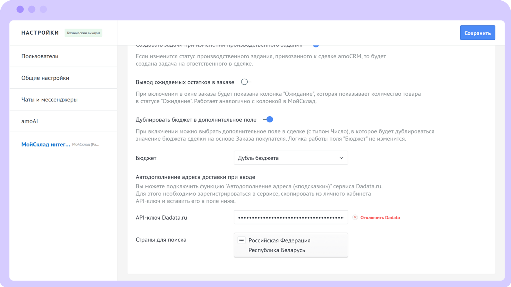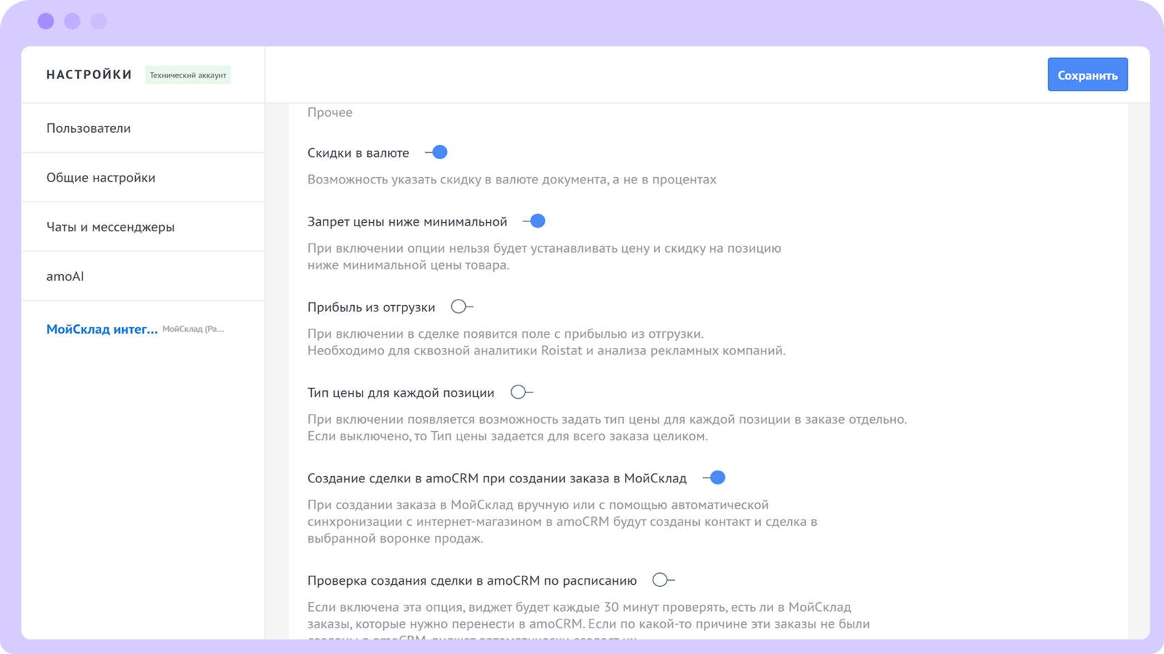 Теперь итоговая сумма заказа из МойСклад может автоматически переноситься в выбранное числовое поле в amoCRM.