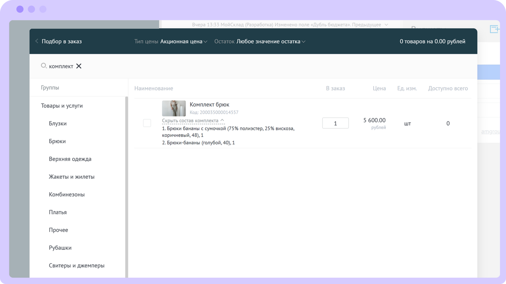 Это особенно полезно при работе со сложными наборами и при подготовке коммерческих предложений — никаких больше сюрпризов в составе позиций.