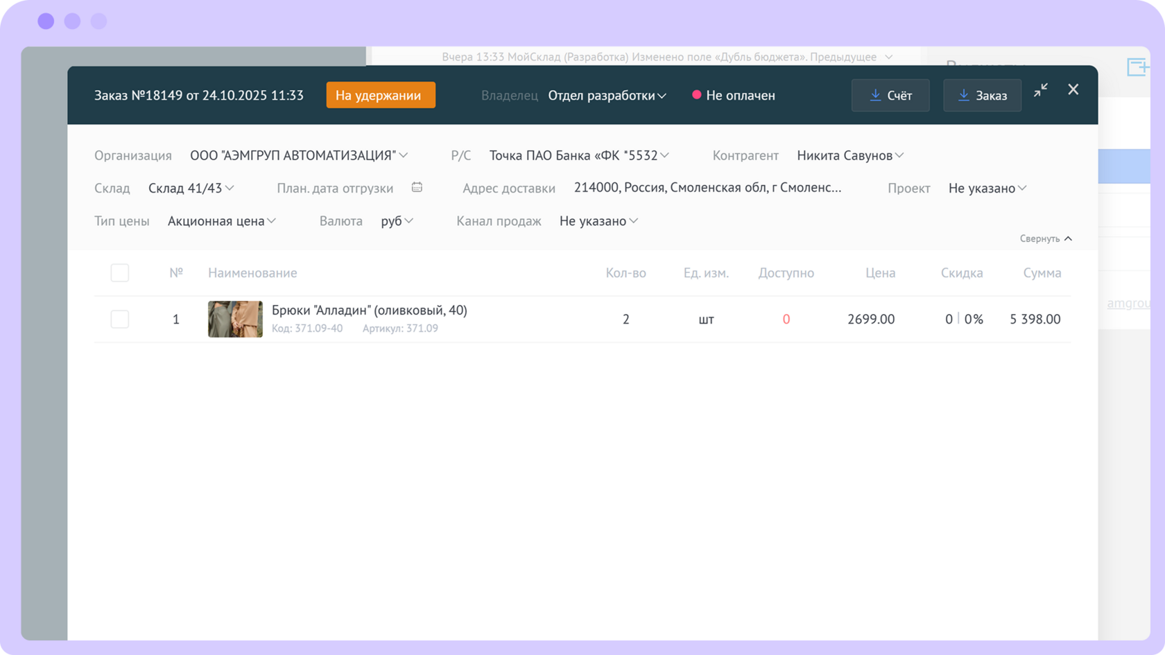 Это помогает менеджерам сразу видеть, какие позиции недоступны, и избегать ошибок при оформлении заказов.