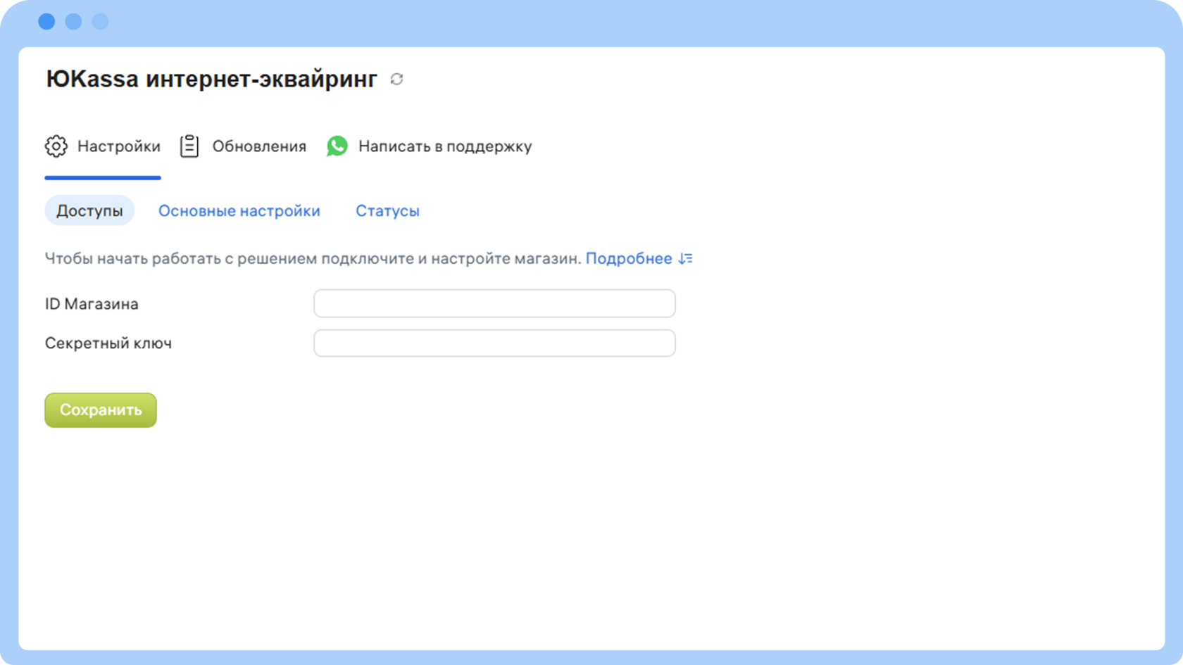 Для настройки нашего решения необходимо получить ID Магазина и Секретный ключ: