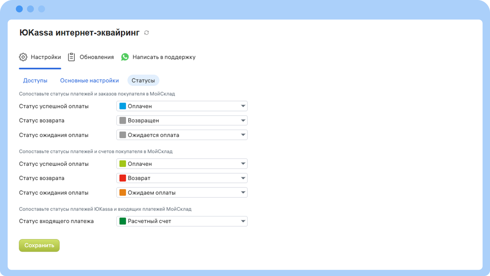 3. Сопоставьте статусы платежей в соответствующем разделе