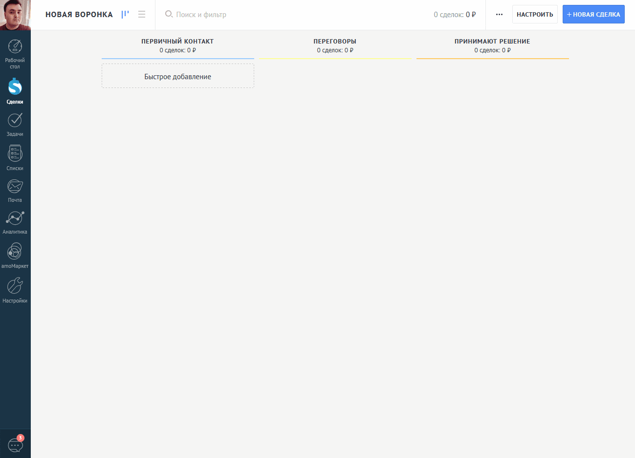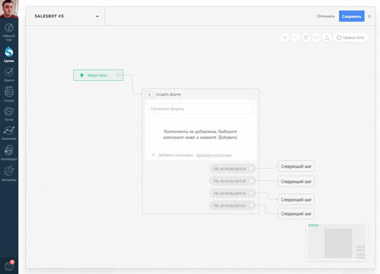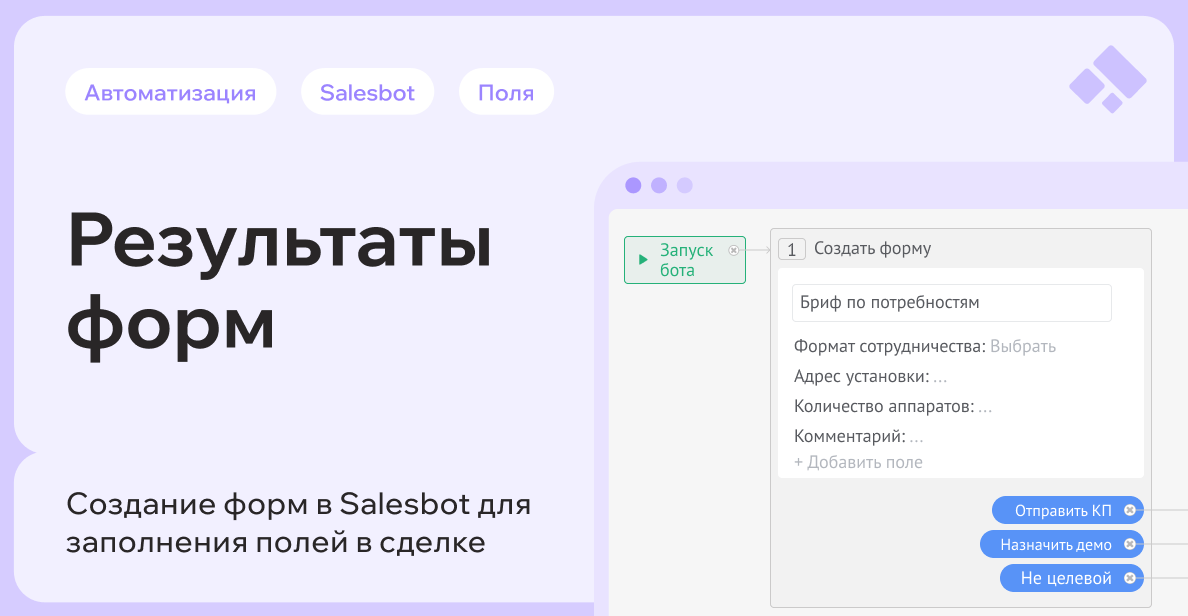 Вы заполняете её — и дальше автоматически запускаются действия, которые вы настроили (например, смена этапа сделки или отправка уведомления).