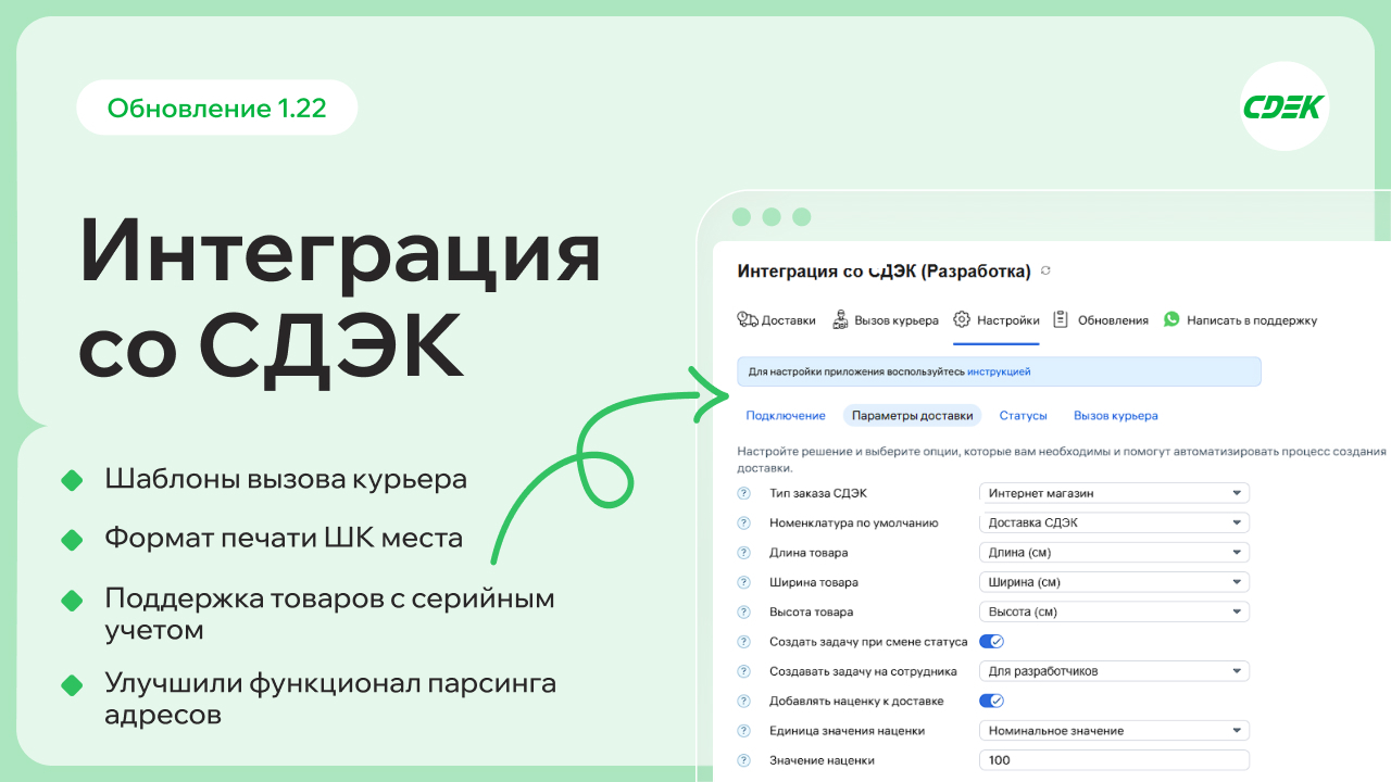 Теперь вы сможете создать несколько шаблонов для формы вызова курьера в настройках решения. Используйте эти шаблоны для быстрого заполнения заявки на вызов курьера.