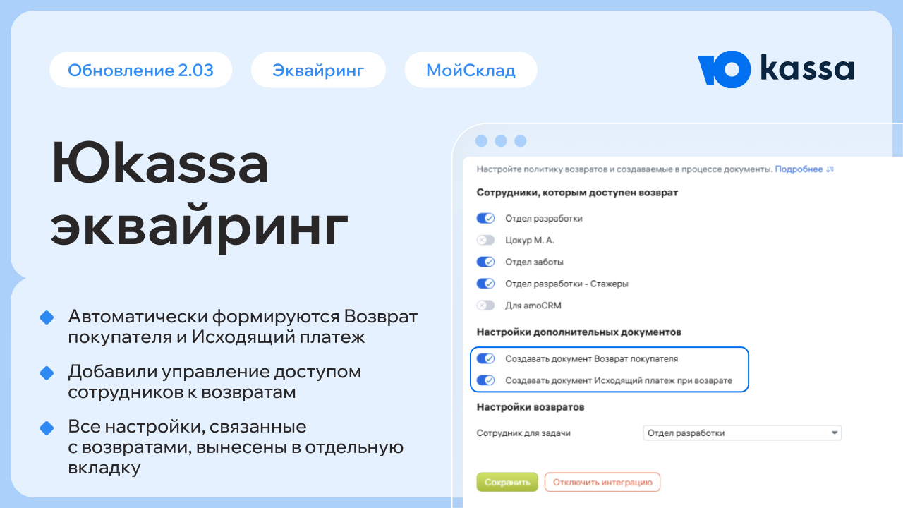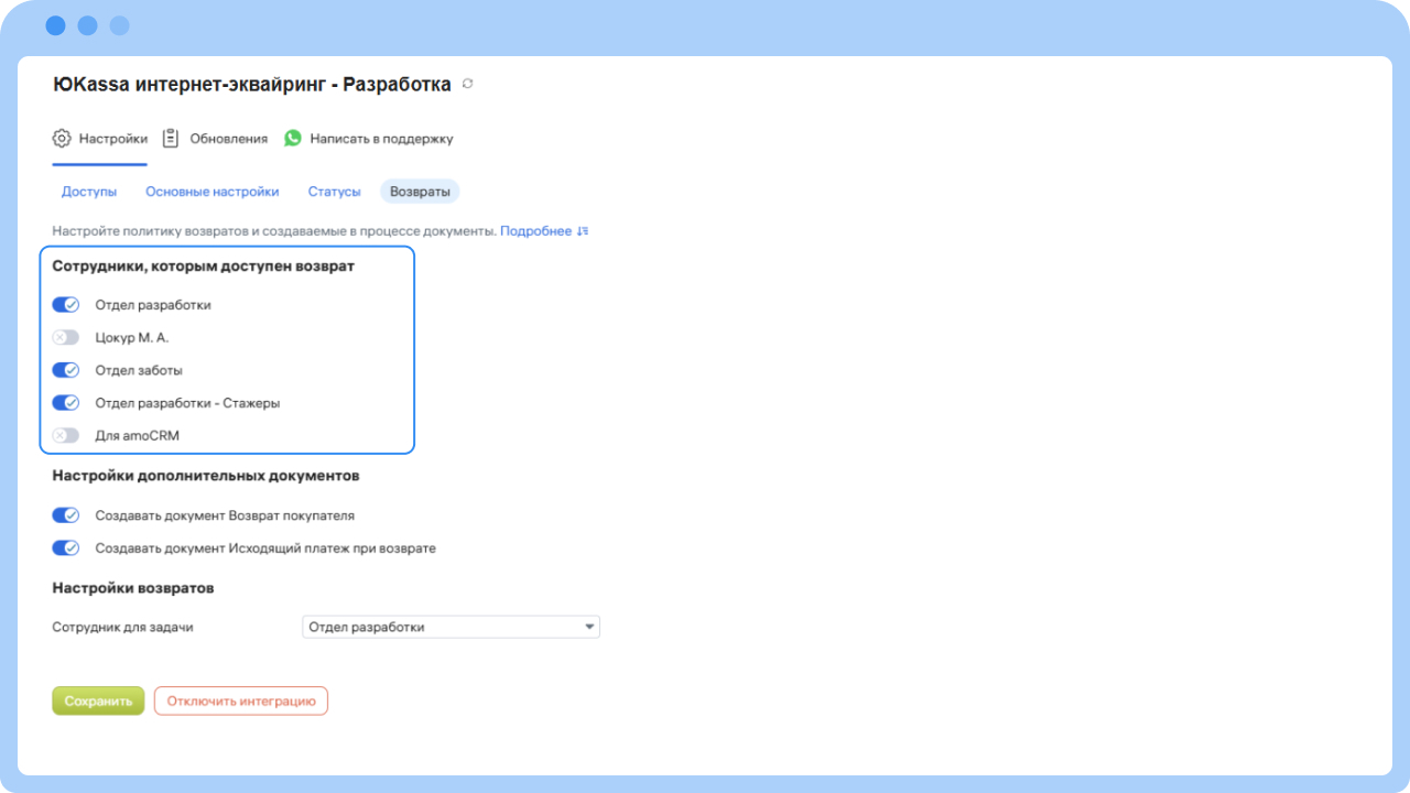 Теперь вы можете настроить, кто из сотрудников имеет доступ к возвратам.