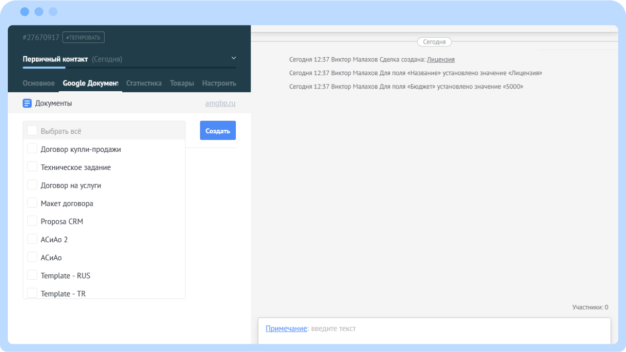 - Новый порядок будет использоваться на странице сделки в разделе «Google Документы от amgroup».