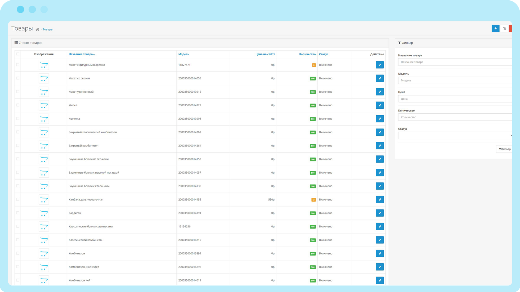 Пример загруженных товаров из МойСклад в OpenCart